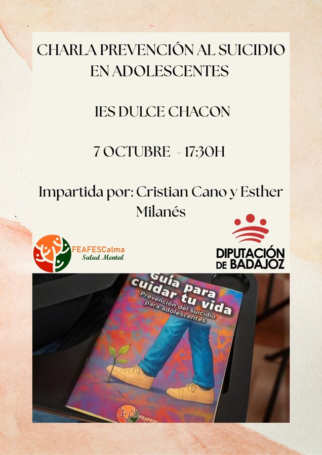 Desde FEAFES Calma Salud Mental tenemos el placer de invitar a todas las familias y comunidad educativa a la presentación de la Guía de Prevención del Suicidio en Adolescentes, un recurso elaborado para acompañar y apoyar en la detección y manejo de estas situaciones tan delicadas.